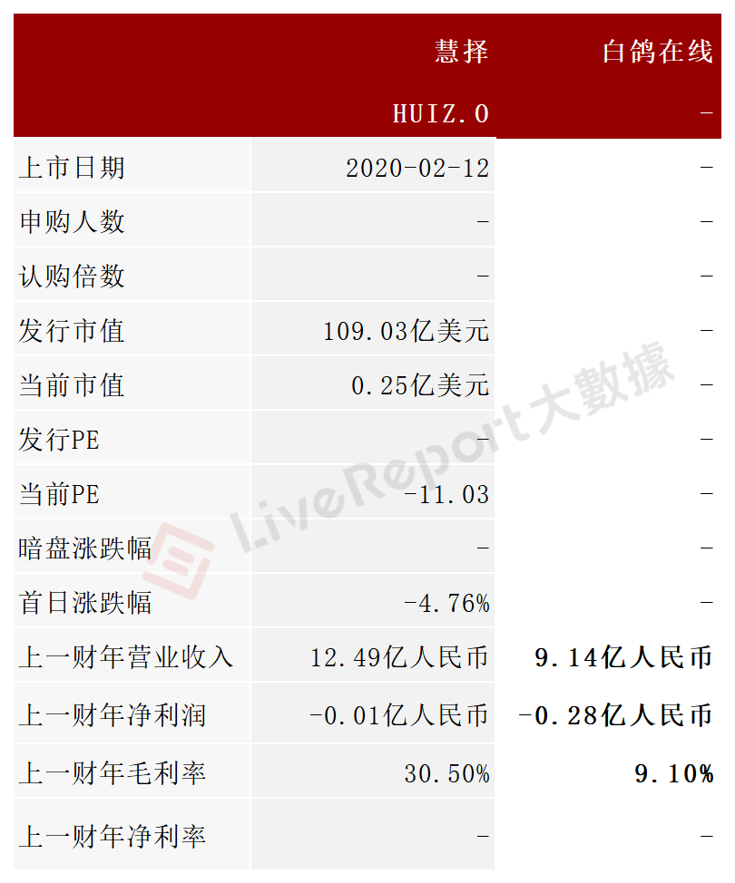 本次选取的同行业对比公司为:慧择(HUIZ.US)