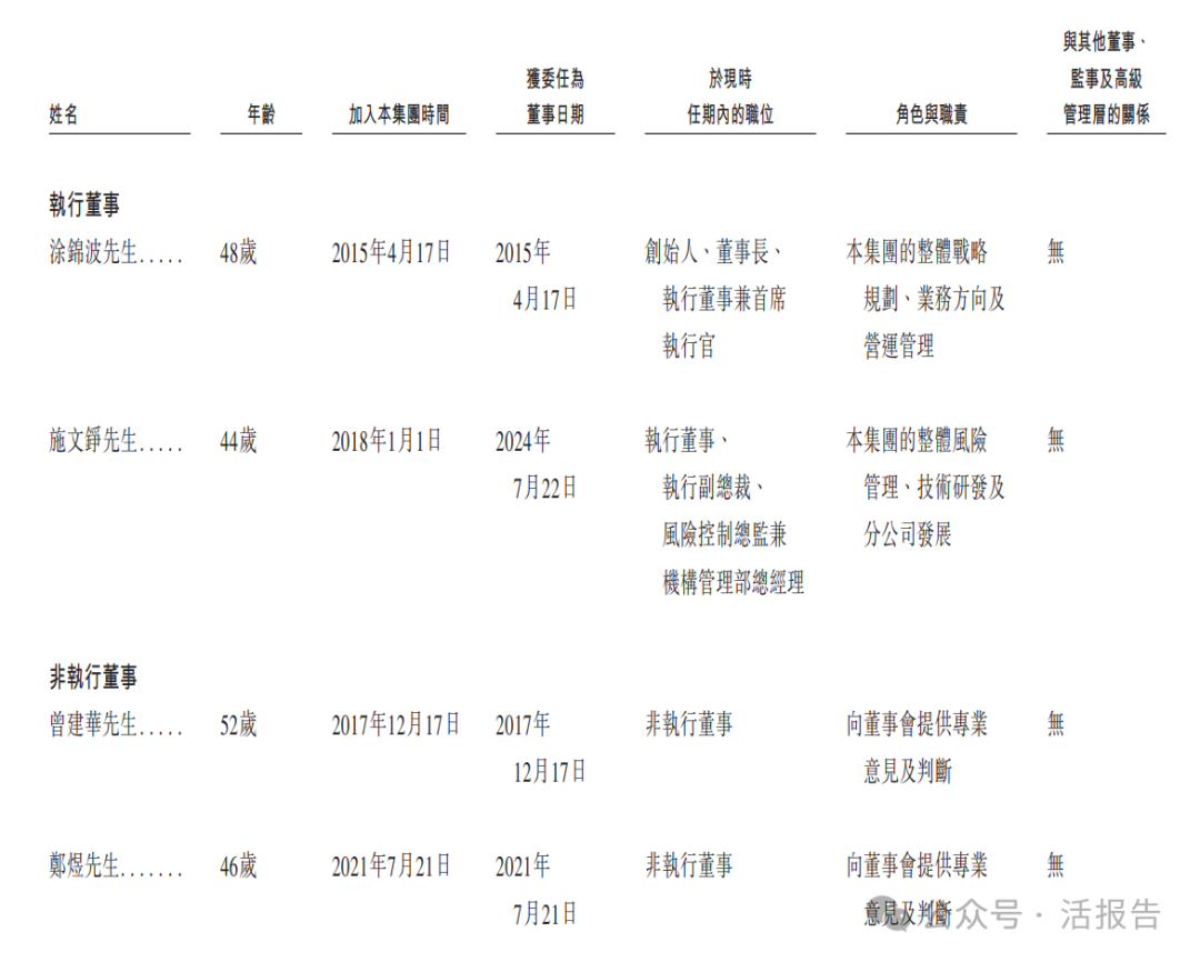 公司董事会由八名董事组成,包括两名执行董事、三名非执行董事及三名独立非执行董事。涂锦波为董事长、执行董事及首席执行官,主要负责公司整体战略规划、业务方向及营运管理。