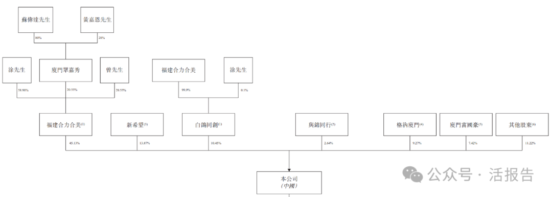 截至最后实际可行日期,涂先生、曾先生、苏伟达先生、黄嘉恩先生、厦门众嘉秀、福建合力合美及白鸽同创合共持有本公司已发行股本总额约55.58%权益。