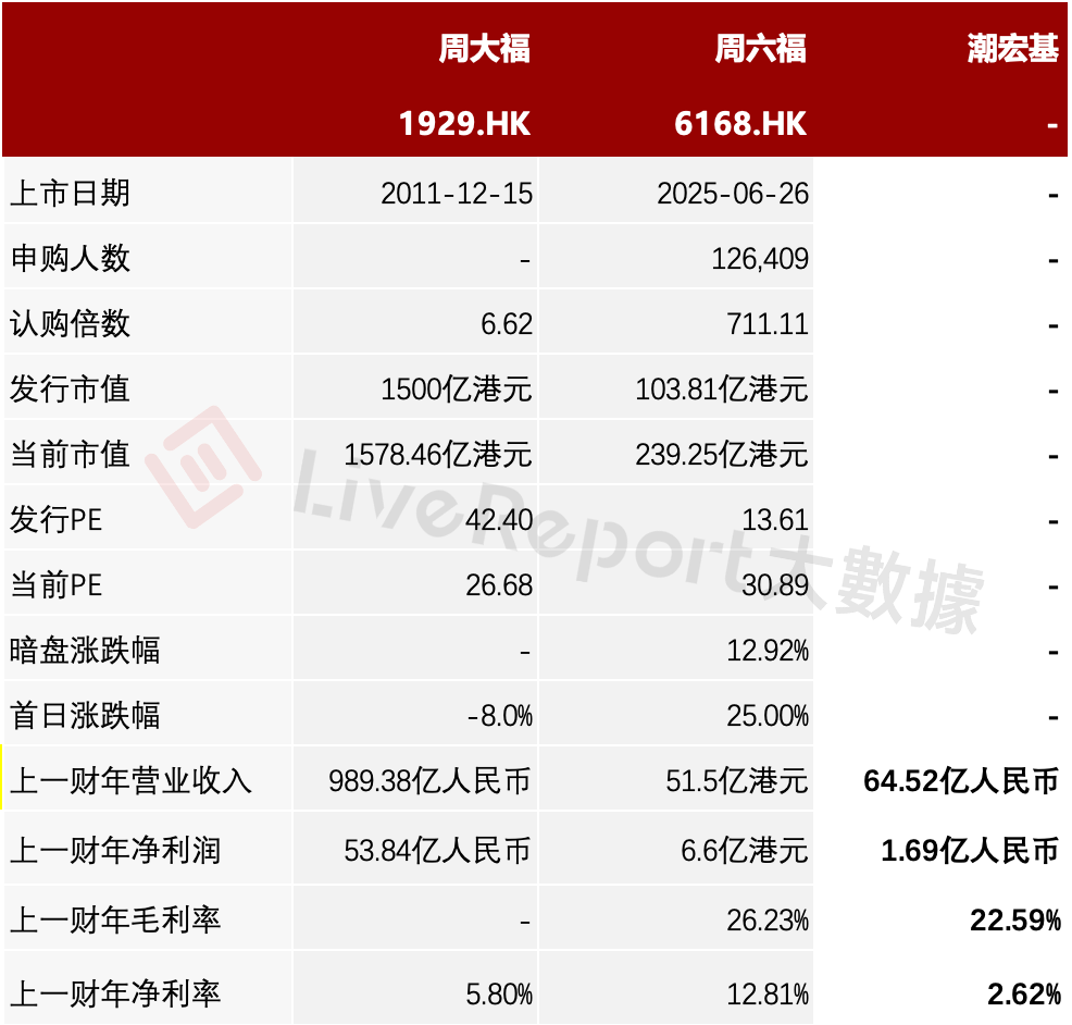 本次选取的同行业对比公司为:周六福[6168.HK]、周大福[1929.HK]