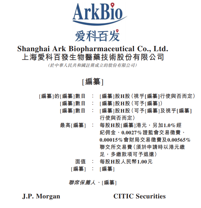 LiveReport获悉,上海爱科百发生物医药技术股份有限公司Shanghai Ark Biopharmaceutical Co., Ltd.(以下简称“爱科百发”)于2025年9月15日在港交所递交上市申请,拟香港主板上市。这是该公司第2次递交上市申请,联席保荐人为摩根大通及中金公司。