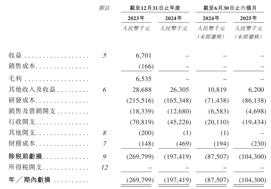 截至2025年前6个月,公司尚未产生商业化收入,研发成本约0.86亿人民币,同比增长20.58%,净亏损约1.04亿,同比亏损扩大19.19%。