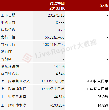 同行业IPO可比公司有:微盟集团(2013.HK)
