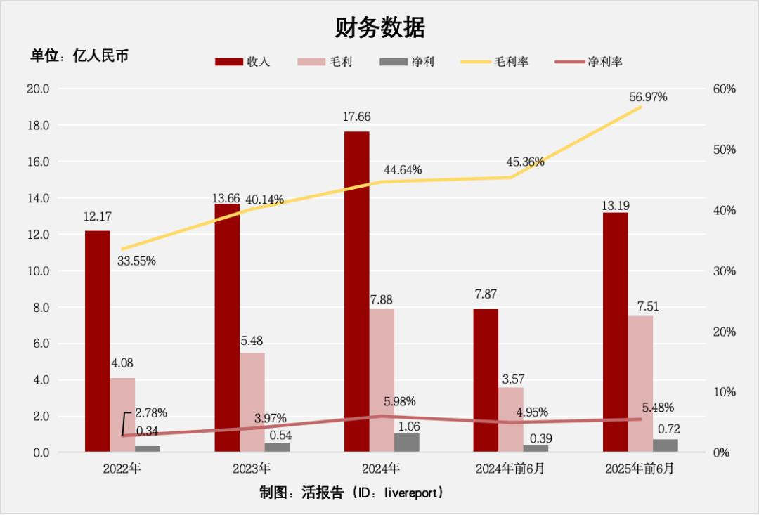 收入分别约为人民币12.17亿元、13.66亿元、17.66亿元、7.87亿元及13.19亿元,年复合增长率为20.46%;
