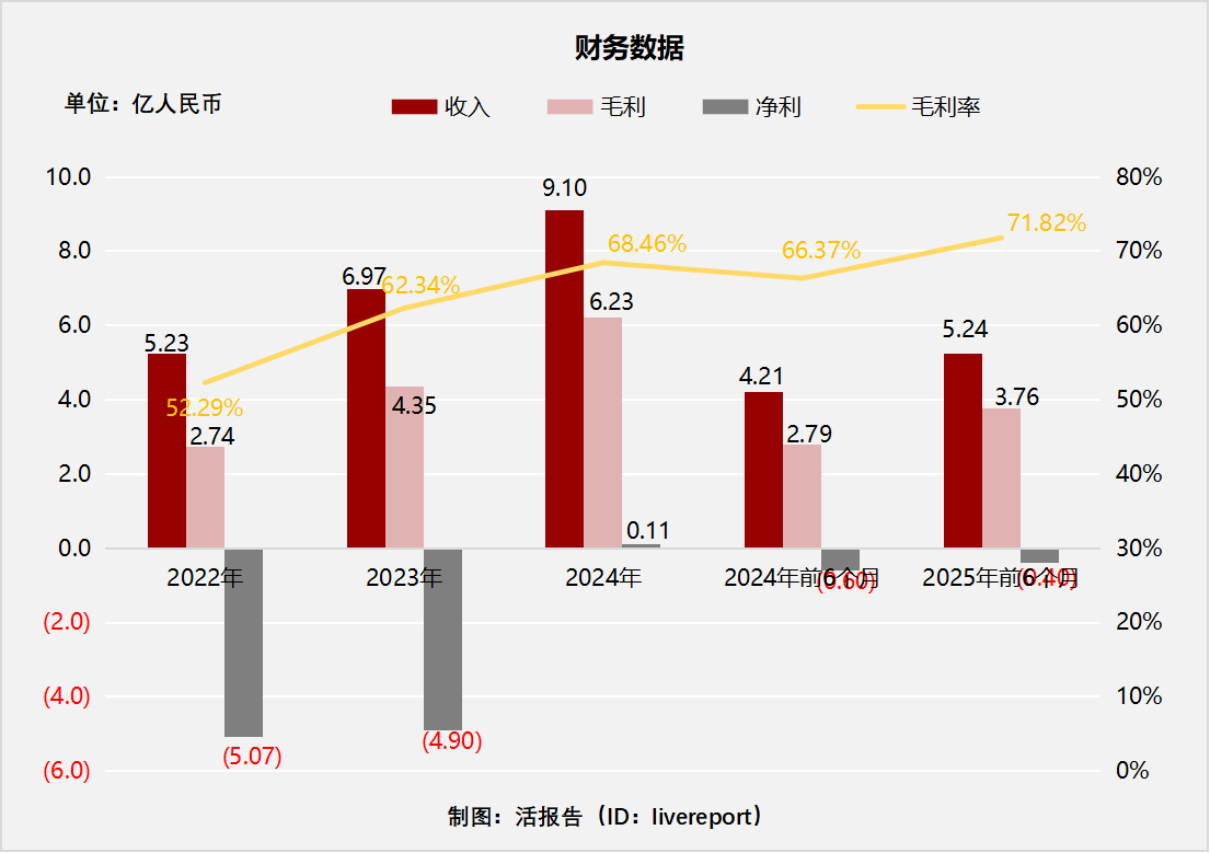 收入分别约为人民币5.23亿元、6.97亿元、9.1亿元、4.21亿元及5.24亿元,年复合增长率为31.88%;