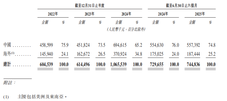 截至2024年12月31日止三个年度2022、2023、2024及2024、2025年前6个月: