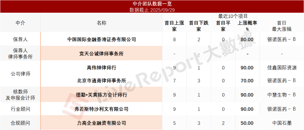 据LiveReport大数据统计,极米科技中介团队共计7家,其中保荐人1家,近10家保荐项目数据表现良好;公司律师共计2家,综合项目数据表现不错。整体而言中介团队历史数据表现较好。