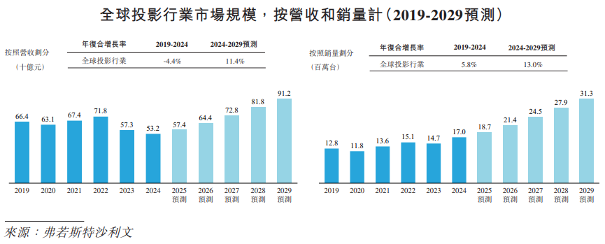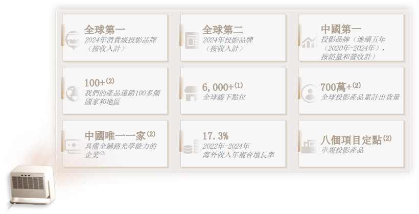 全球投影行业的领军者,致力于各种消费级、车规级、工程级智能投影产品的研发、生产与销售。根据弗若斯特沙利文的资料,以