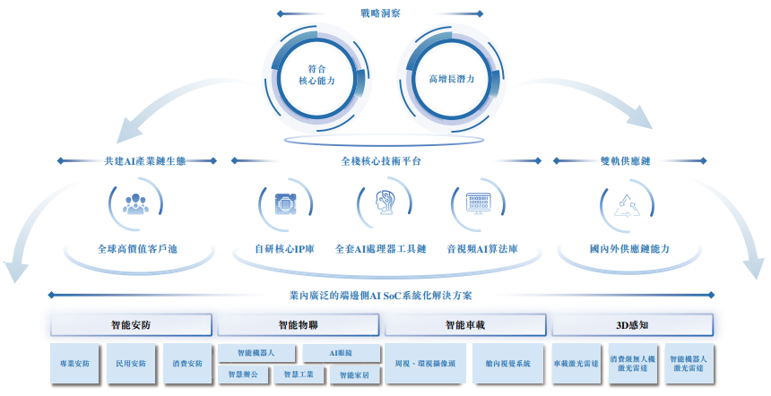 市场拥有广泛的产品组合及全面的业务布局,产品现已广泛应用于包括智能安防、智能物联及智能车载等各类端边侧场景。