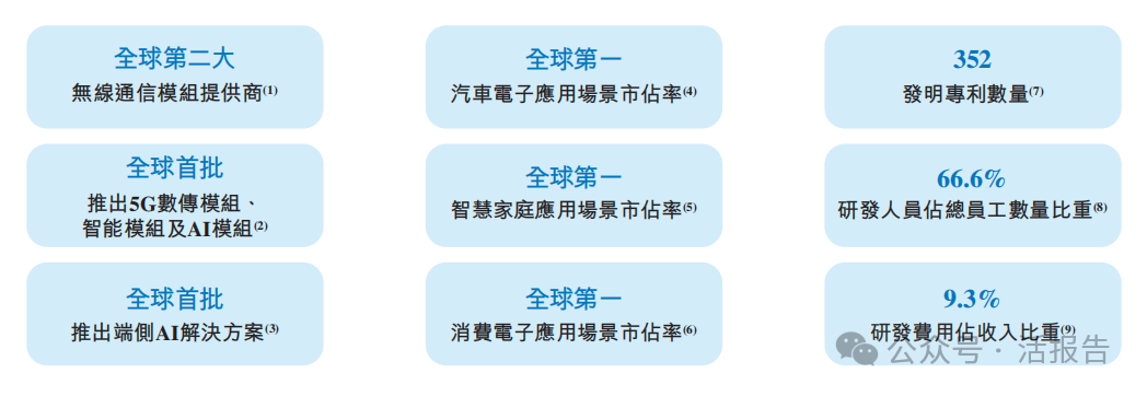 根据弗若斯特沙利文资料,公司是全球第二大无线通信模组提供商,全球市场份额为15.4%(以2024年来自持续经营的收入计)。