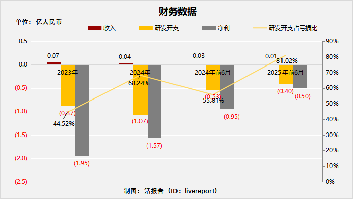 研发分别约为人民币-0.87亿元、-1.07亿元、-0.53亿元及-0.4亿元,2024年同比增长率为23.00%,2025年前6月同比增长率为-23.72%;