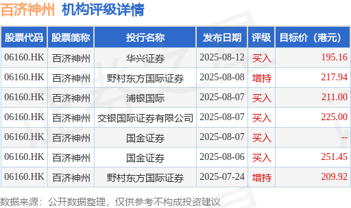 截至2025年10月17日收盘,百济神州(06160.HK)报收于183.0港元,下跌3.68%,成交量373.51万股,成交额6.92亿港元。投行对该股的评级以买入为主,近90天内共有5家投行给出买入评级,近90天的目标均价为218.41港元。华兴证券最新一份研报给予百济神州买入评级,目标价195.16港元。