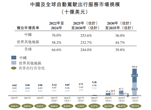 亿美元。在世界其他地区,自动驾驶出行服务的市场规模预计