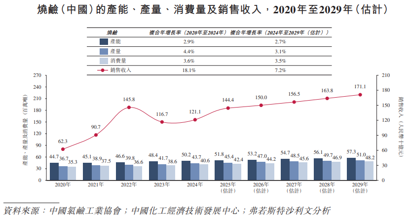 年收入计,公司是中国最大的粒状烧碱、食品级片状烧碱、三氯乙烯、四氯乙烯及氯丙烯生产商,按截至