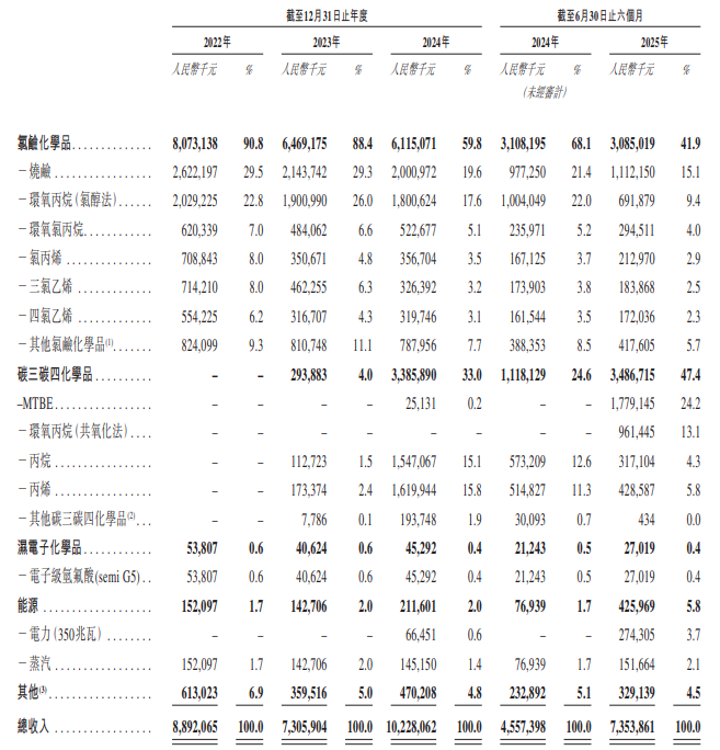 湿电子化学品。此外,于往绩记录期间,公司亦自能源销售获得部分收入。