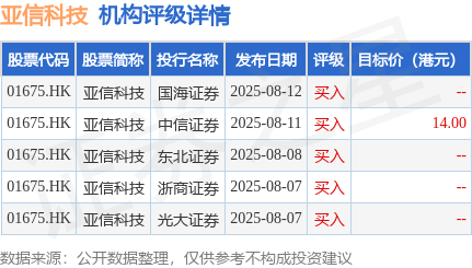 截至2025年10月28日收盘,亚信科技(01675.HK)报收于8.66港元,下跌1.03%,成交量244.75万股,成交额2136.42万港元。投行对该股的评级以买入为主,近90天内共有5家投行给出买入评级,近90天的目标均价为14港元。国海证券最新一份研报给予亚信科技买入评级。