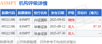 截至2025年10月28日收盘,ASMPT(00522.HK)报收于87.25港元,下跌6.93%,成交量396.8万股,成交额3.51亿港元。投行对该股的评级以买入为主,近90天内共有2家投行给出买入评级,近90天的目标均价为87.1港元。兴证国际最新一份研报给予ASMPT增持评级。