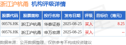截至2025年10月30日收盘,浙江沪杭甬(00576.HK)报收于7.7港元,下跌0.39%,成交量448.64万股,成交额3465.44万港元。投行对该股的评级以买入为主,近90天内共有2家投行给出买入评级,近90天的目标均价为8.25港元。华泰证券最新一份研报给予浙江沪杭甬买入评级,目标价8.25港元。