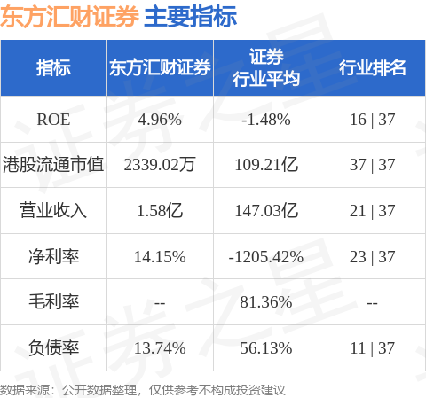 东方汇财证券港股市值2339.02万港元,在证券行业中排名第37。主要指标见下表: