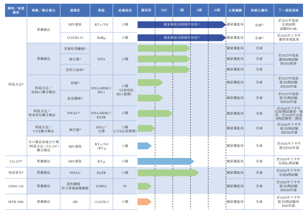 在肿瘤治疗领域,公司发现核心产品阿兹夫定具备广谱抗肿瘤活性,是过去30年来唯一一款具备双重机制且具有高选择性的核苷类抗肿瘤药物。其通过抑制肿瘤细胞的DNA合成及调节免疫系统功能,从而发挥双重抗肿瘤作用。公司正在不断拓展公司的核心产品阿兹夫定用于的新适应症及联合疗法,包括(i)阿兹夫定╱抗PD-1的联合疗法用于治疗肝癌和结直肠癌,动物实验数据表明已实现肿瘤100%消除;(ii)阿兹夫定╱哆希替尼联合疗法用于治疗非小细胞肺癌,动物模型显示肿瘤抑制率达到92.82%;以及(iii)阿兹夫定单药疗法及阿兹夫定╱CTX联合疗法治疗血液肿瘤,动物实验数据显示单药疗法对血液肿瘤有明显的抑制作用,并在联合疗法中实现肿瘤100%消除。