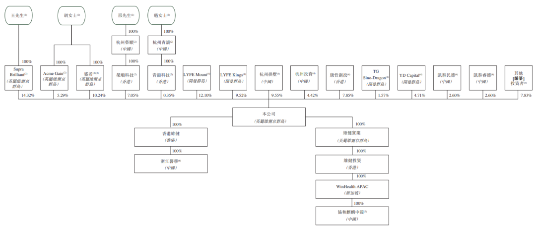 康哲医药创投(香港)、共青城弘明创业投资、杭州拱墅产业基金、杭州产业投资、杭州泰鲲股权投资、凯泰民德、凯泰睿德、LYFE Kings Peak、LYFE Mount Rainer、宁波启茂投资、宁波前海贝增投资、杭州勤智健原创业投资、TG Sino-Dragon Fund II、YD Capital I等,持股比例分散,合计占比超40%。