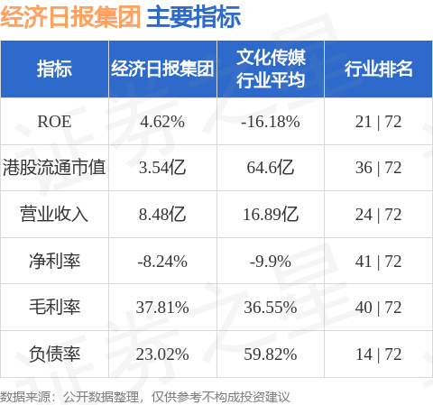 经济日报集团港股市值3.54亿港元,在文化传媒行业中排名第36。主要指标见下表: