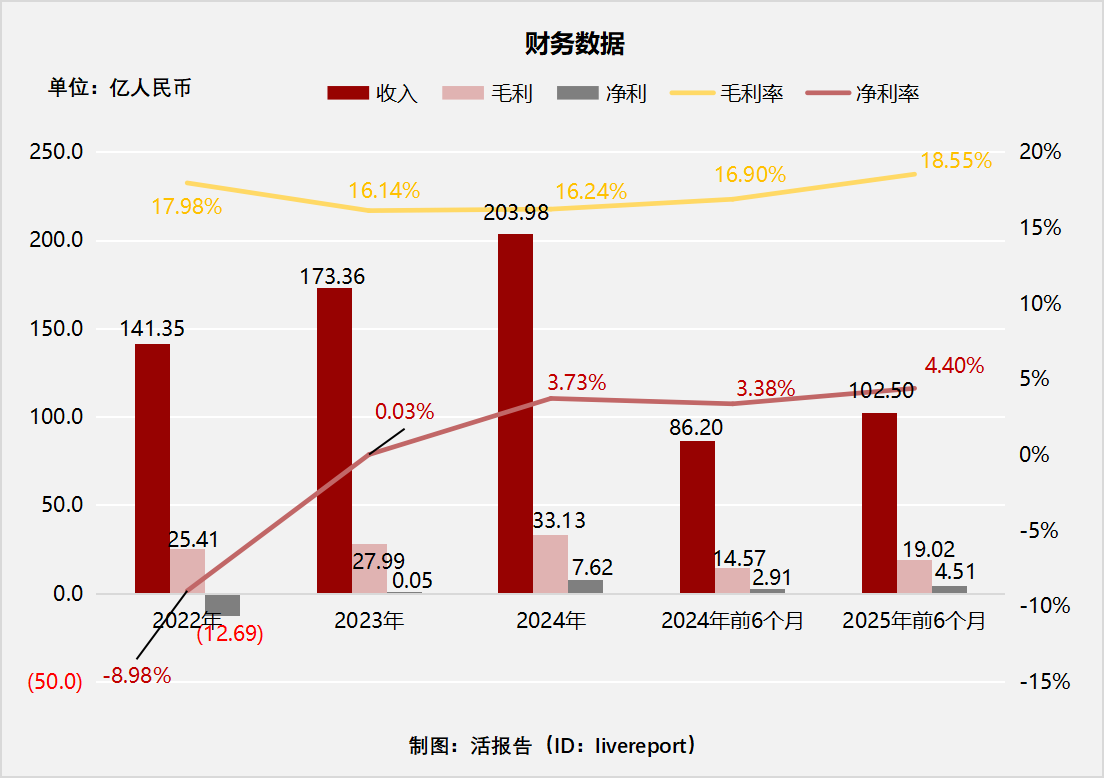 公司是中国最大的MRO采购服务提供商。2024年收入为人民币203.98亿元,净利润7.62亿元,毛利率为16.24%,2025年前6个月收入102.5亿元,净利4.51亿元。