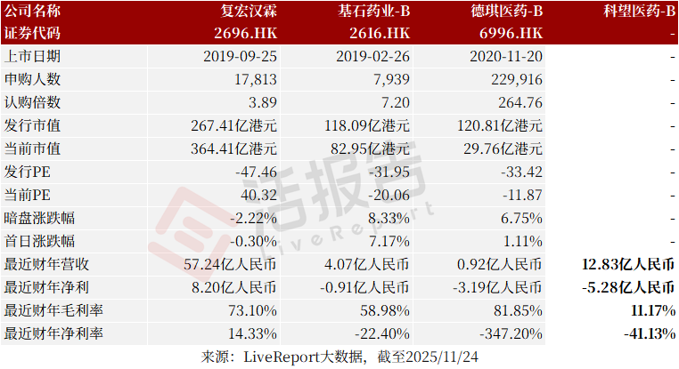 同行业IPO可比公司:复宏汉霖、基石药业、德琪医药