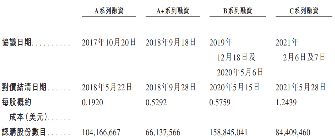 2017-2021年,公司历经4轮融资,融资合计约2.52亿美元,C轮融资对应的投后估值达5.99亿美元。