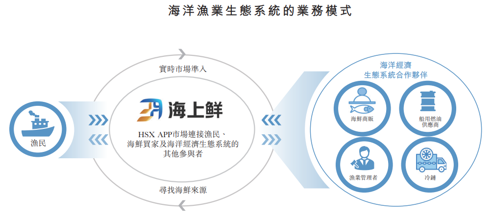 经过十多年的运营,公司的HSX APP已演变为以数据为驱动的数字B2B海洋渔业市场,涵盖了庞大的生态系统,包括渔民、海鲜加工商、海鲜商贩及鱼贩,截至2025年8月31日的注册用户超过50,000名。其现在主要为用户提供即时访问有用内容的功能,如海鲜市场趋势、捕获数据及海上天气状况等,同时亦作为我们应用程序及沿海洋渔业供应链从线上到线下服务的端口,包括海鲜B2B商务、船用燃油供应、冷链物流及其他辅助服务。