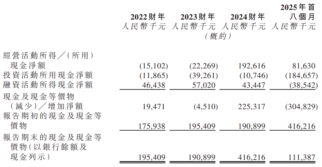 截至2024年12月31日止3个年度、2024年及2025年前8个月: