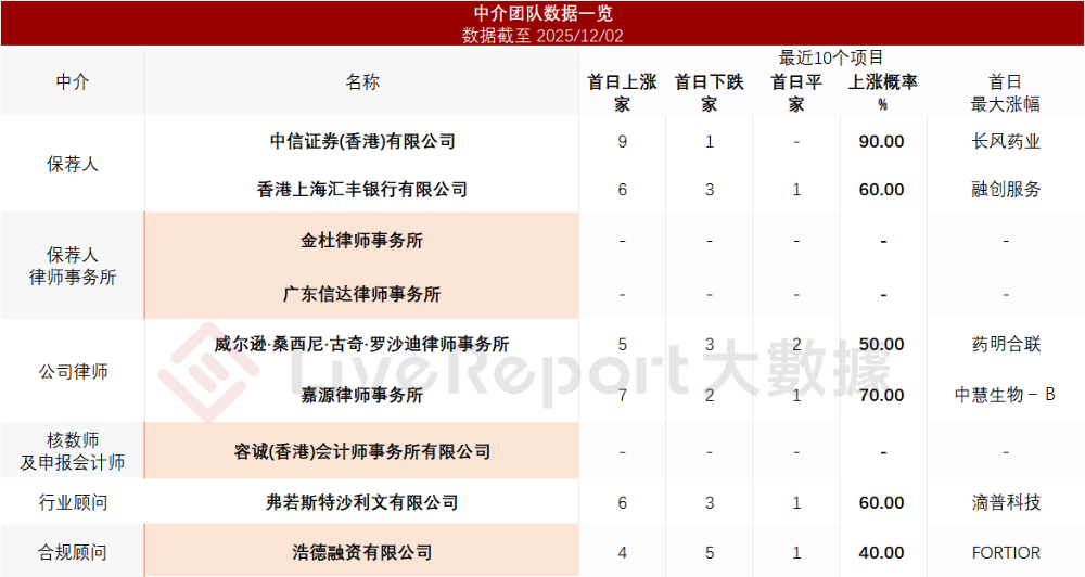 家保荐项目数据表现尚可;公司律师共计