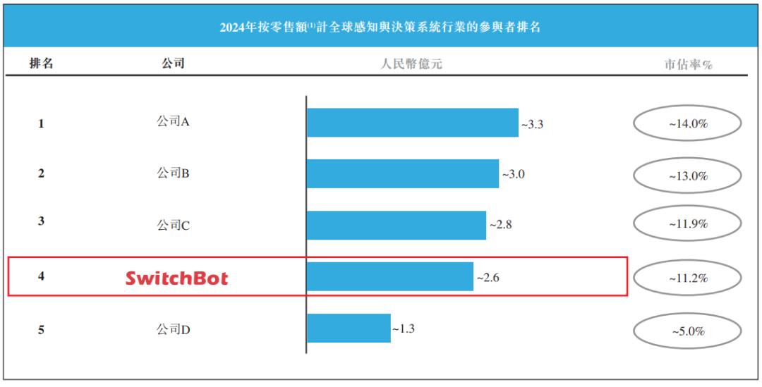 在日本市场,公司于2022年至2024年期间以零售额计算,在AI具身家庭机器人系统行业中排名第一,公司的手指机器人、门锁机器人及窗帘机器人于2022年至2024年期间在日本市场中均排名第一。