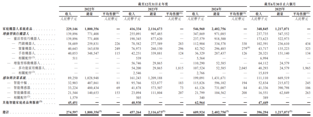 公司是家庭机器人系统全球提供商,2024年收入6.10亿元人民币,净亏损0.03亿元;2025年上半年收入3.96亿元,同比增长44.1%,净利润0.28亿元,同比扭亏为盈,毛利率54.2%。