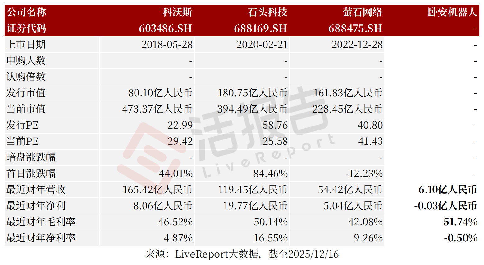 同行业IPO可比公司:科沃斯、石头科技、萤石网络。