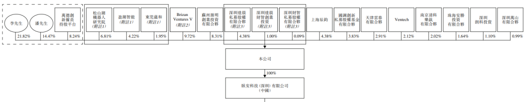 其他投资者包括:李泽湘教授控制的松山湖机器人研究所、盈湖智能、东莞蕴和,合计持股12.98%;Brizan Ventures(9.72%)、源码资本(8.31%)、电广传媒(000917.SZ)(5.47%)、高瓴资本(4.38%)、国调创新(3.83%)、Ventech China(2.12%)等。