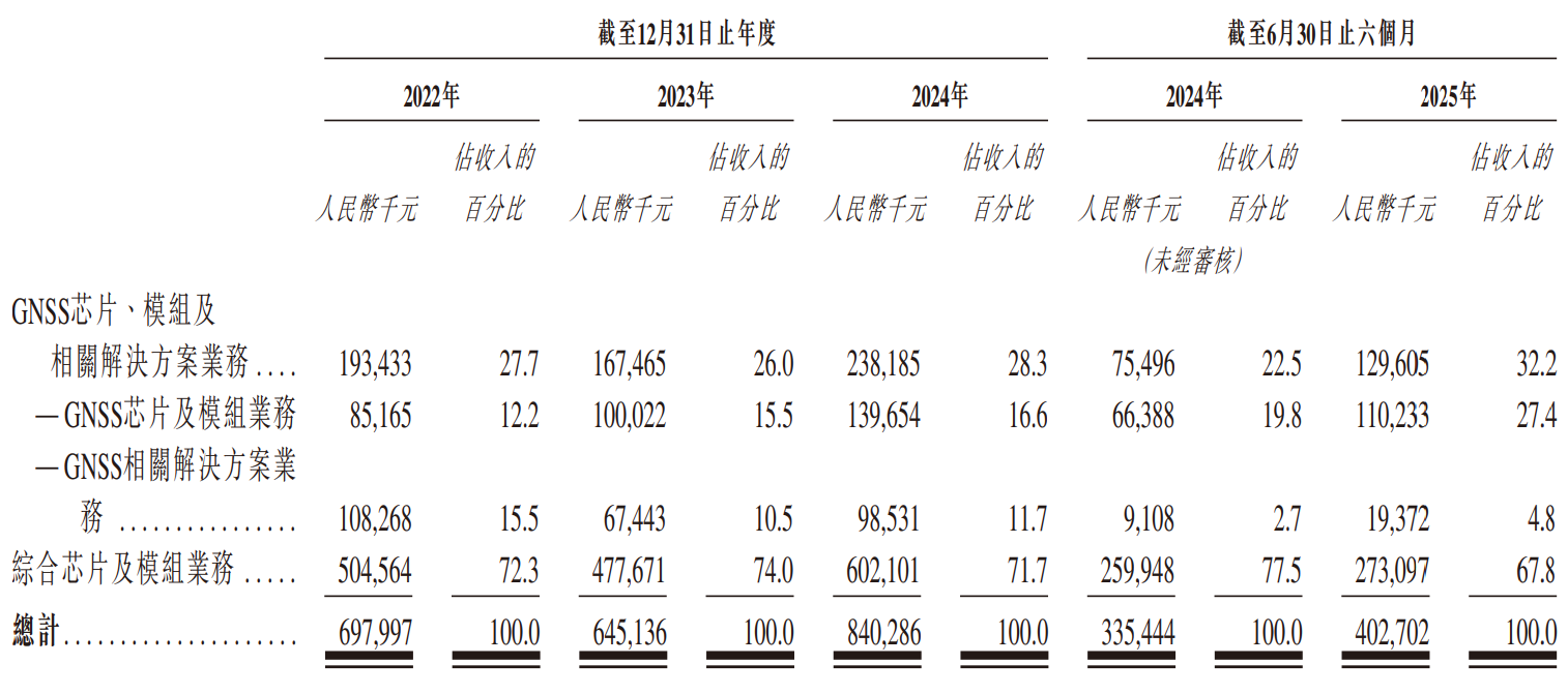 的业务线主要包括:(i)GNSS芯片、模组及相关解决方案业务,及(ii)综合芯片及模组业务。