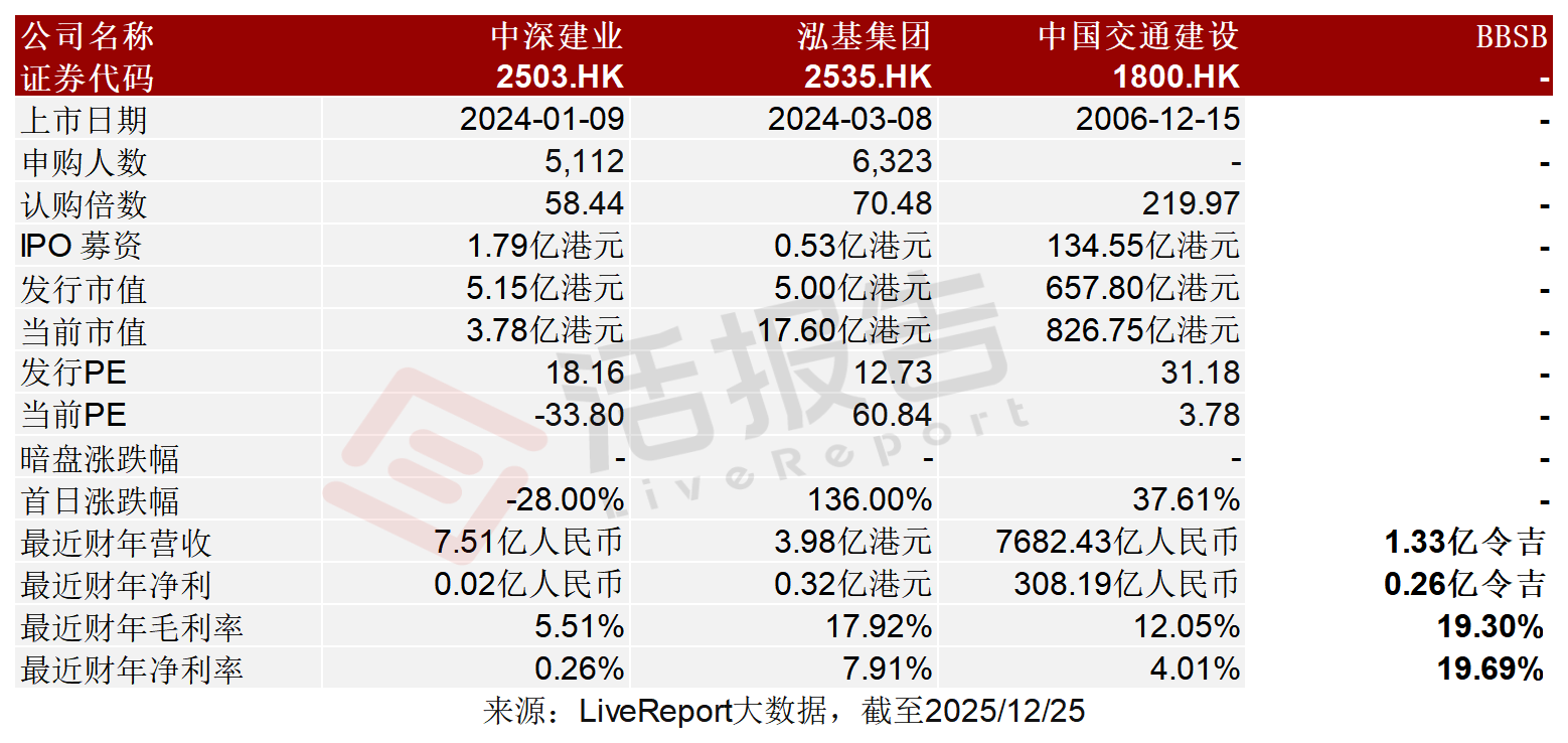 中深建业(2503.HK)、泓基集团(2535.HK)、中国交通建设(1800.HK)