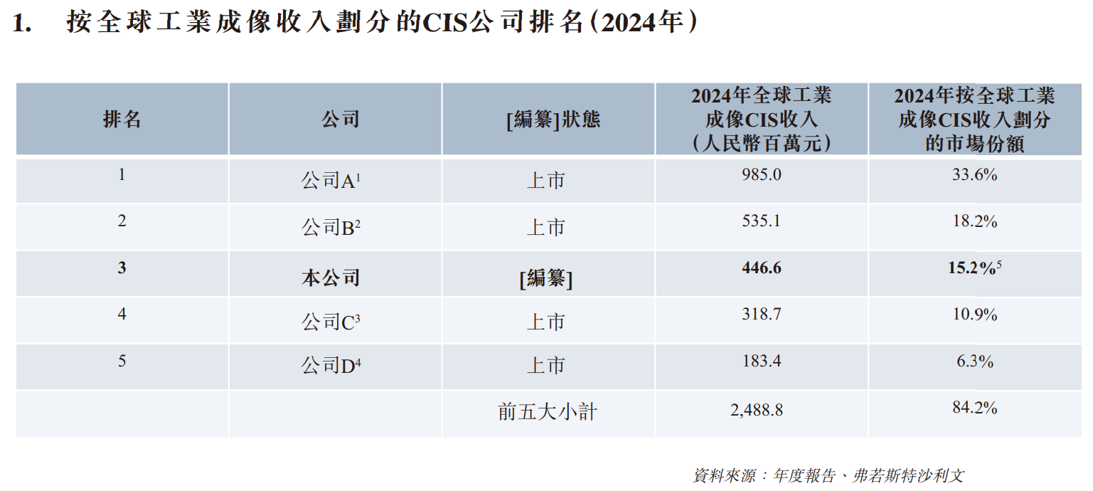 在全球CIS公司中排名第三,在中国CIS公司中排名第一,占全球市场份额的15.2%;