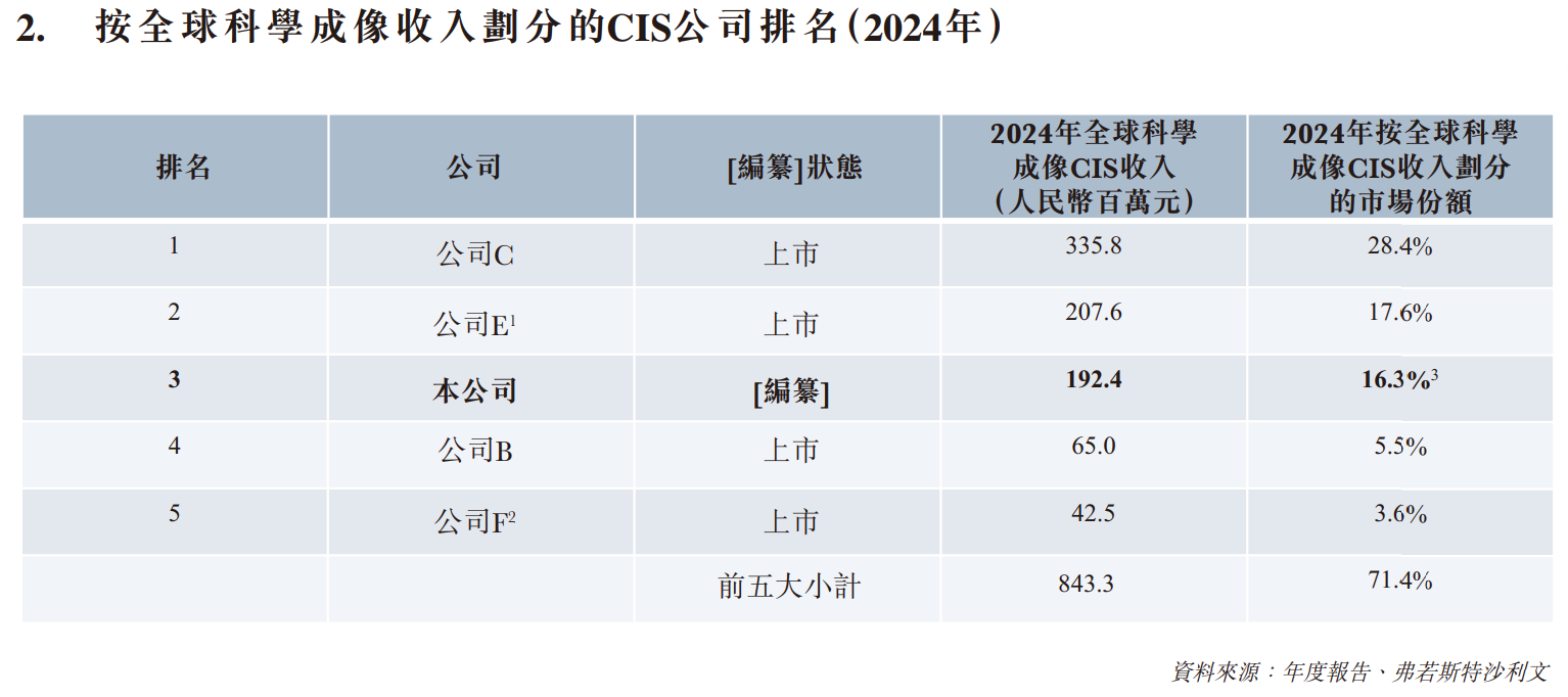 由于公司的核心业务集中在工业及科学成像,因此排名在这两个领域中呈现。