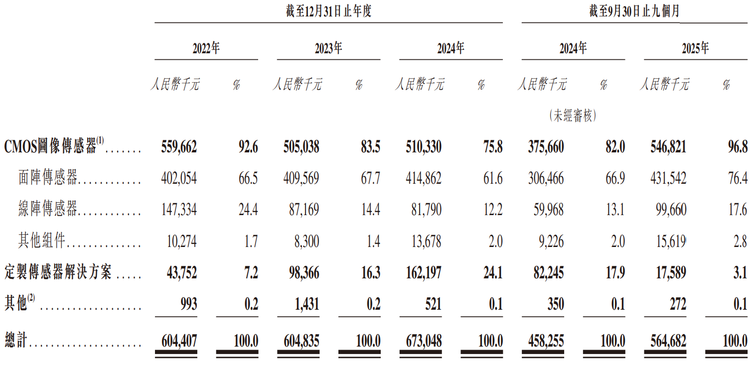 公司是CMOS图像传感器(CIS)提供商,2024年收入6.73亿元人民币,净利润1.97亿元,毛利率58.96%;2025年前9月收入5.65亿元,同比增长