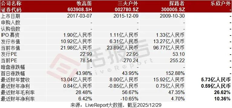 牧高笛(603908.SH)、三夫户外(002780.SZ)、探路者(300005.SZ)