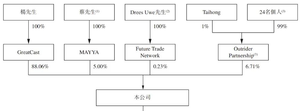 杨先生、GreatCast、Taihong及Outrider Partnership构成控股股东,合共持股94.77%。