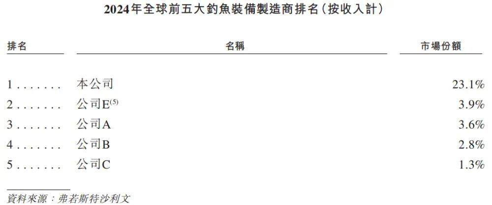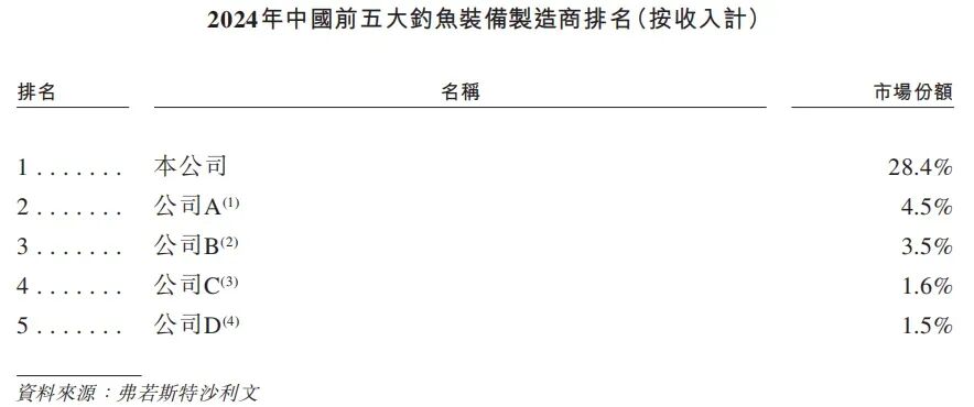 根据弗若斯特沙利文的资料,就钓鱼装备制造业而言,按2024年收入计,