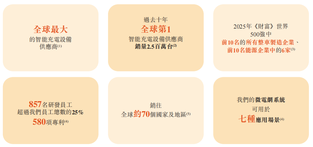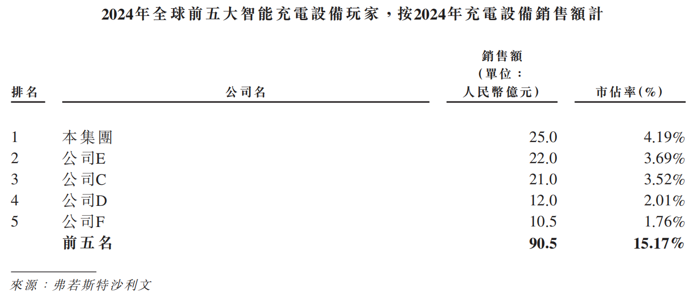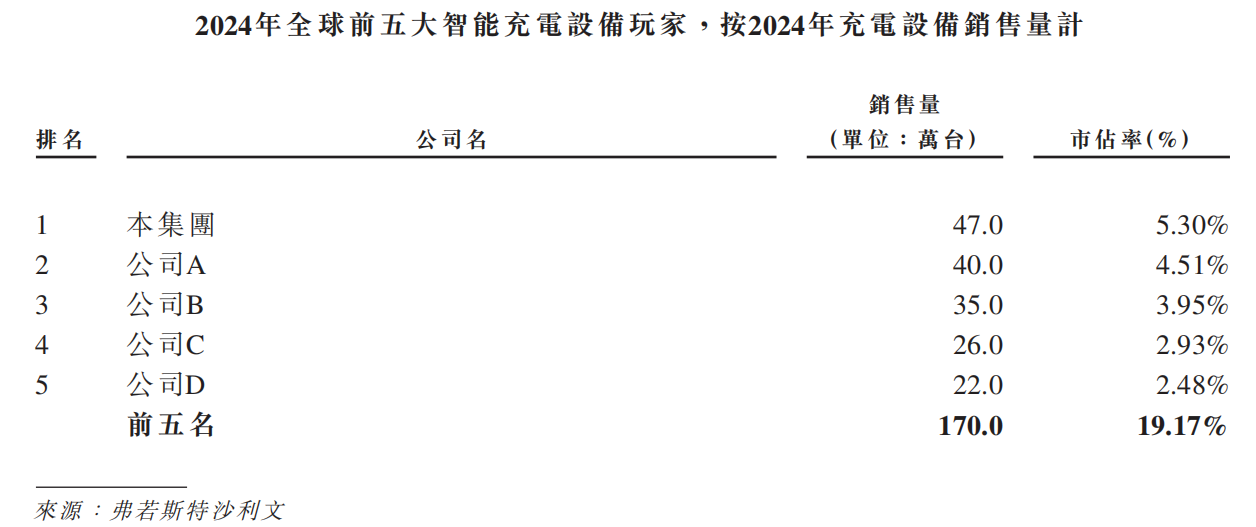 是中国首家获高端国际主机厂客户认证的智能充电设备供应商,提供高兼容性产品及服务,满足主机厂对充电基础设施的高标准要求。根据弗若斯特沙利文的资料,以2024年的收入及销量计,