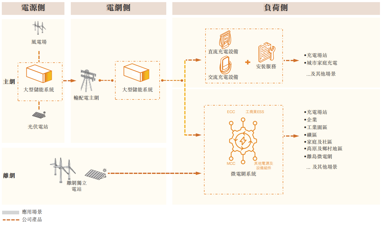 的产品组合涵盖智能充电、多场景微电网及大型储能领域的设备及服务。