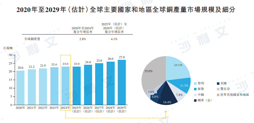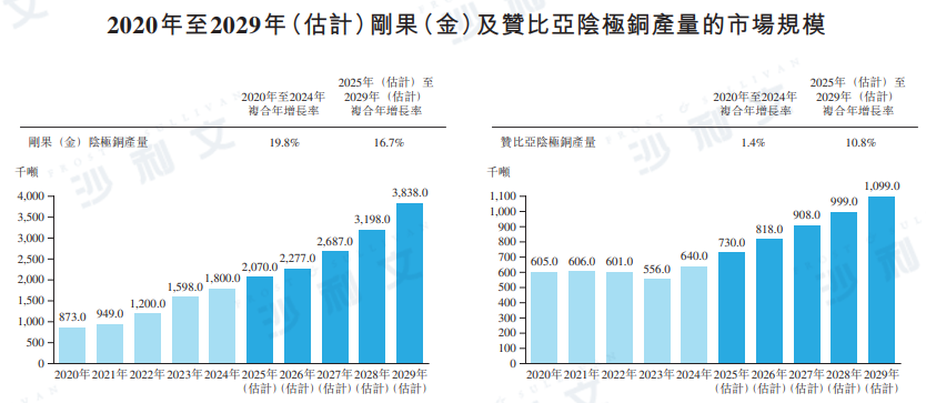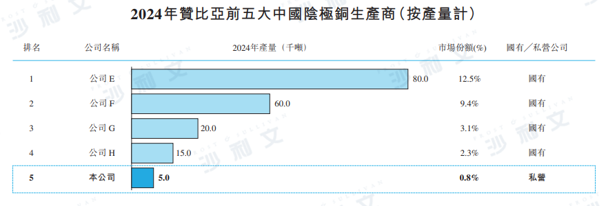 2024年赞比亚阴极铜年产量约为64万吨,前五大中国生产商合计占比超过25%。在赞比亚,本公司产量为5,000吨,位列行业第五。本公司在中国私营生产商中排名第一。本公司亦为中国唯一一家在刚果(金)和赞比亚均跻身前五名的阴极铜生产商。