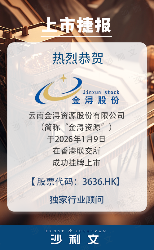 云南金浔资源股份有限公司(股票代码:3636.HK)于2026年1月9日成功登录香港资本市场主板。云南金浔资源股份有限公司是全球优质阴极铜的领先制造商,在刚果(金)及赞比亚拥有强大的影响力,专注于开发及供应优质铜资源,以满足中国庞大的铜需求。弗若斯特沙利文(Frost & Sullivan, 以下简称“沙利文”)为云南金浔资源股份有限公司赴港上市提供独家行业顾问服务,特此热烈祝贺其成功上市。