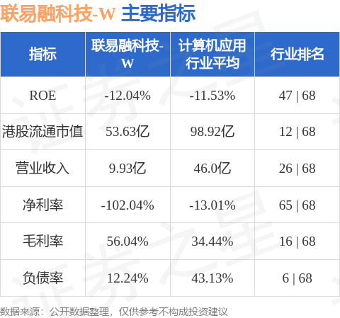 联易融科技-W港股市值53.63亿港元,在计算机应用行业中排名第12。主要指标见下表:
