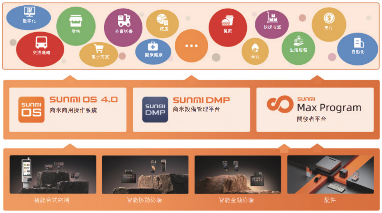 公司提供一整套智能设备,覆盖15大行业及超过100个细分垂直领域,涵盖餐饮、超市、运动健身、诊所及物流配送等。这一多元化产品组合由公司自研SUNMI OS驱动,专为满足商户在各种商业场景中的广泛应用需求而设计。